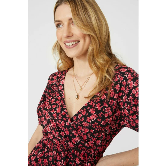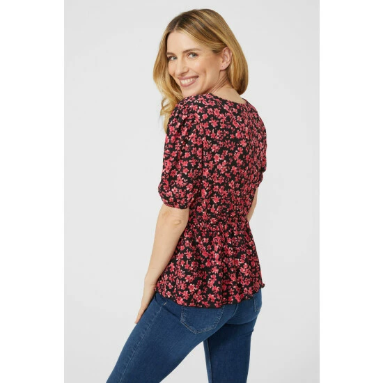 Printed Floral Puff Sleeve Wrap Top