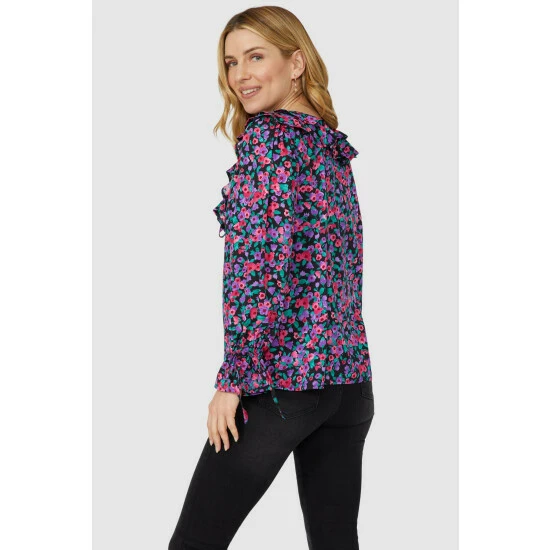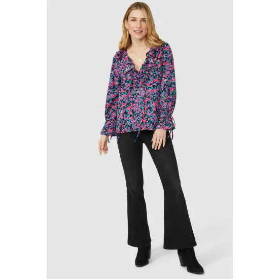 Printed Frill Neck Blouse from Mantaray. Inject feminine styles into your seasonal wardrobe and select this style-approved womens blouse. Featuring long frill-cuff sleeves with tie embellishments, a skin-showing neckline with a drawstring front, a floral print aesthetic and a tailored cut finish for the perfect fit. Made from 100% Polyester. Wash at 30. Model wears a Size 10.