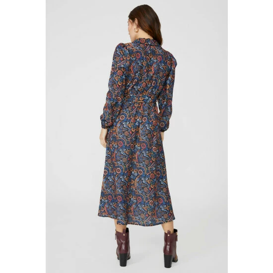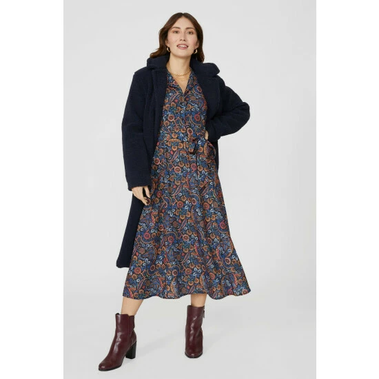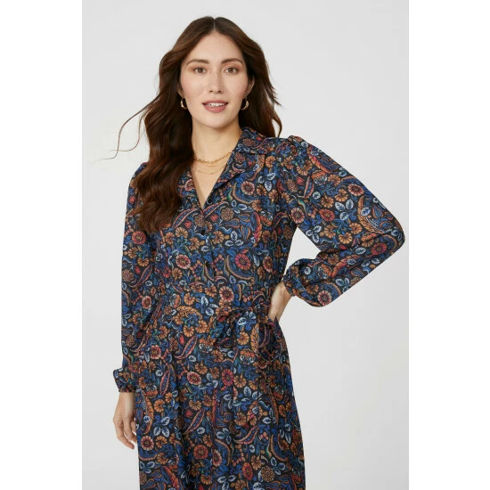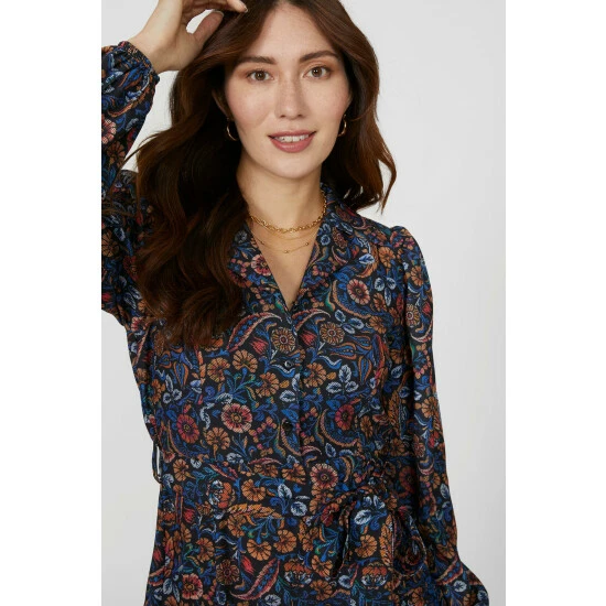 Printed Shirt Dress from Mantaray. Inject beautiful dress designs into your seasonal wardrobe and opt for this printed shirt dress for women. Boasting long and comfortable sleeves, a skin-showing neckline, a self-tie belt to beautifully cinch the waist and a tailored cut finish. Made from 100% Polyester. Wash at 30. Model wears a Size 10.