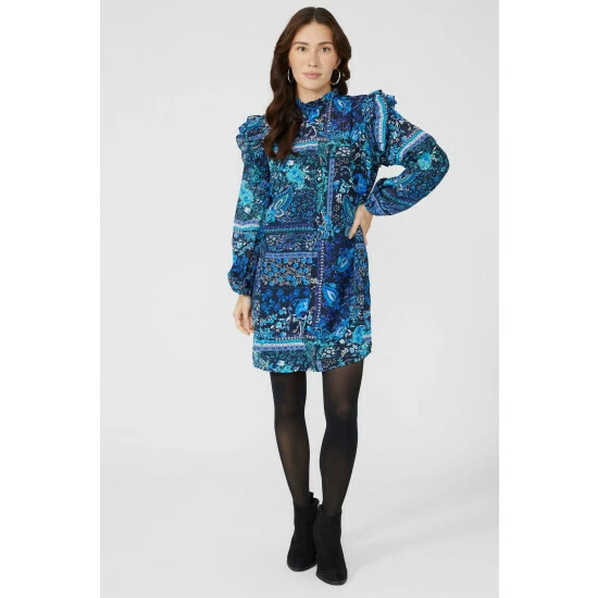 Printed Tunic Dress With Frill Detail from Mantaray. Modify your style and elevate your look with this bohemian-inspired women’s frill tunic dress. Boasting long sleeves with cuff detailing, frill shoulders, a high cut neckline, an intricate printed design, and a tailored cut finish. Made from 100% Polyester. Wash at 30. Model wears a Size 10.