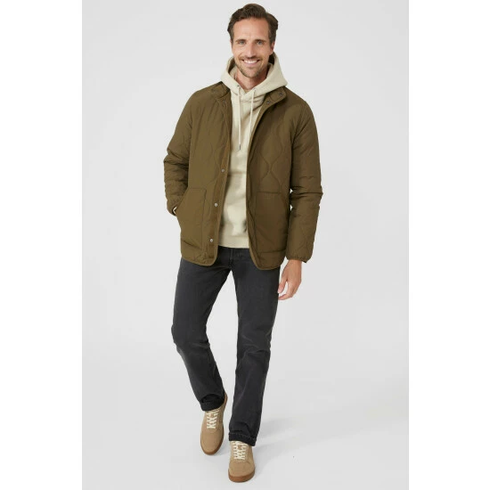 Quilt Funnel Liner from Mantaray. Opt for cosy and stylish men’s outerwear this season and look to this practical quilt jacket. Boasting long comfortable sleeves, a smart collar neckline with popper buttons, two large side pockets and an all-over quilt funnel texture print finish that exudes sophistication. Style with a fitted hoodie, denim jeans and your favourite shoes. Made from 100% Nylon. Wash at 40. Model wears a Size M.