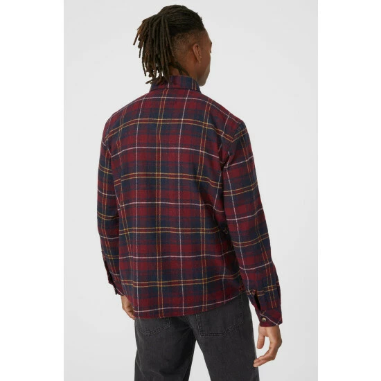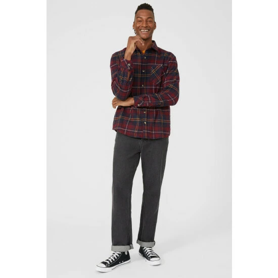 Red Check Overshirt from Mantaray. Opt for casually cool menswear styles and look to this must-have check overshirt. Featuring long sleeves with buttoned cuffs, a smart and structured collar neckline, front button detailing, a small front pocket and a smart check shirt print finish. Made from 70% Acrylic, 15% Cotton, 15% Polyester. Wash at 30. Model wears a Size M.