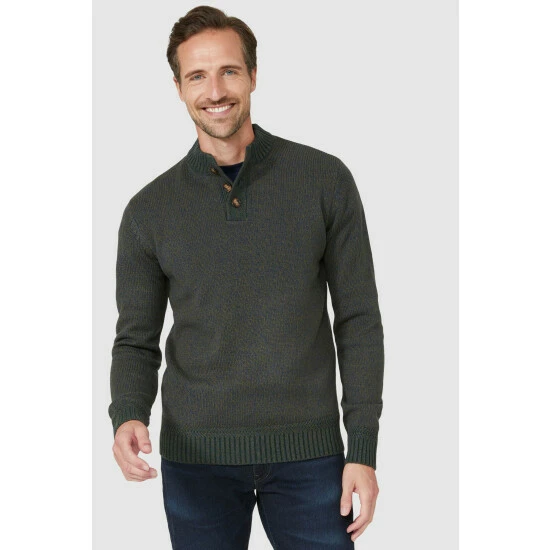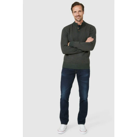 Reverse Stitch Button Neck Turtle from Mantaray. Inject warm menswear styles into your wardrobe this season and opt for this must-have men’s turtle-neck jumper. Boasting long fitted sleeves with stretchy cuffs, a high collar neckline to keep cosy, horn button detailing and a tailored cut finish for a comfortable fit to the body. Made from 90% Acrylic 10% Wool Wash at 40. Model wears a Size M.