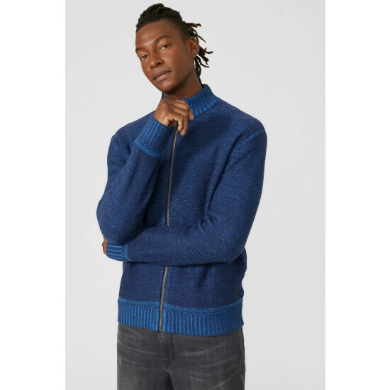 Reverse Stitch Zip Thru from Mantaray. Effortlessly casual yet sophisticated in style, pick this seasonal stitch men’s jumper today. Boasting long fitted sleeves with cuff detailing, a high cut neckline for warmth, a zip up front and a refined-looking stitch jumper pattern finish. Style with cargo pants and your favourite trainers. Made from 90% Acrylic 10% Wool. Wash at 40. Model wears Size M.