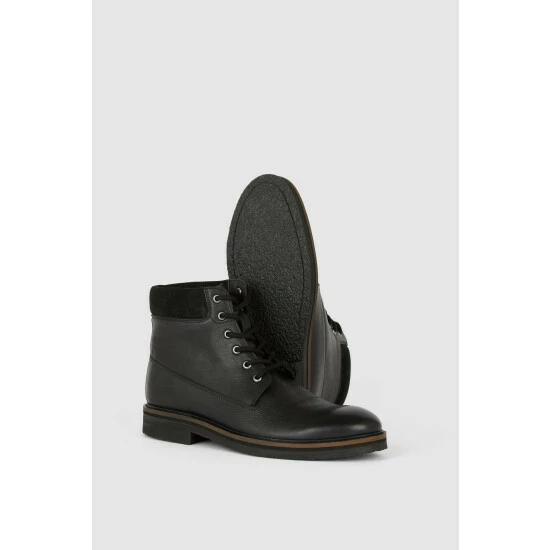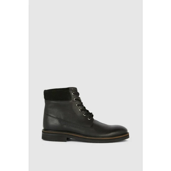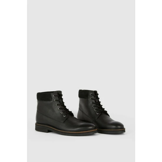 Smart in style and expertly crafted from premium fabrics, look to these must-have leather padded collar boots. Featuring a padded ankle design for optimal comfort and ease of wear, front lace detailing, a small boot heel and a luxe leather finish.