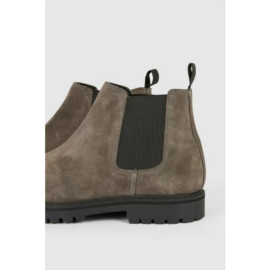 Elevate your style with these luxe suede Chelsea boots. Featuring a comfortable boot opening, a pull-back tab, side stretch detailing, and a super-soft suede finish.
