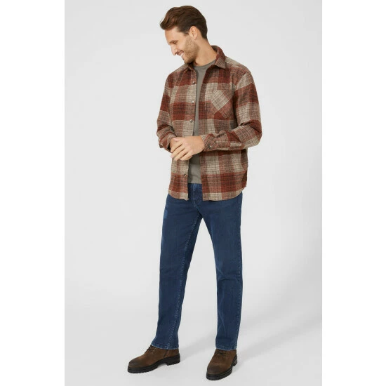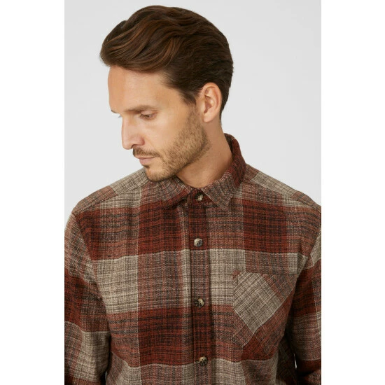 Shadow Check Overshirt from Mantaray. Smart in aesthetic and comfortable in design, look to this must-have men’s check overshirt. Boasting long sleeves with buttoned cuffs, a smart collar neckline, front button detailing and a sophisticated check shirt print finish. Crafted from 70% Acrylic, 15% Cotton, 15% Polyester. Wash at 30. Model wears a Size M.