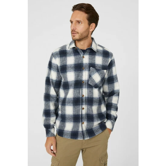 Shadow Check Overshirt from Mantaray. Smart in design and crafted from premium fabrics, look to this check men’s overshirt. Boasting long smart sleeves with stretch cuffs, a smart collar neckline, front buttons, a small front pocket, and a tailored cut finish. Made from 70% Acrylic, 15% Cotton, 15% Polyester. Wash at 30. Model wears a Size M.