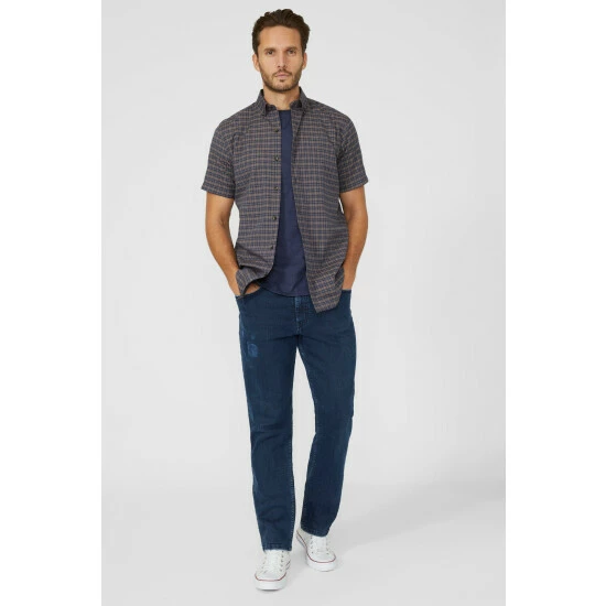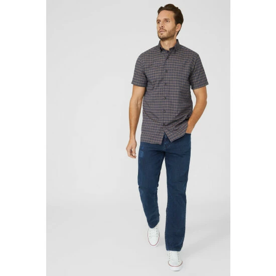 Short Sleeve Textured Grid Check Shirt from Mantaray. Inject smart occasionwear styles into your seasonal wardrobe and opt for this grid check shirt for men. Featuring short-cut sleeves, a smart collar neckline, front button detailing, a refined textured grid check print and a tailored cut finish. Made from 100% Cotton. Wash at 40. Model wears Size M.