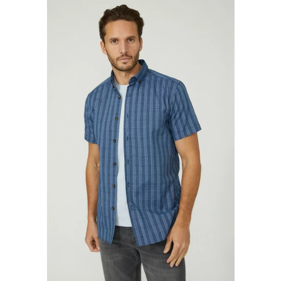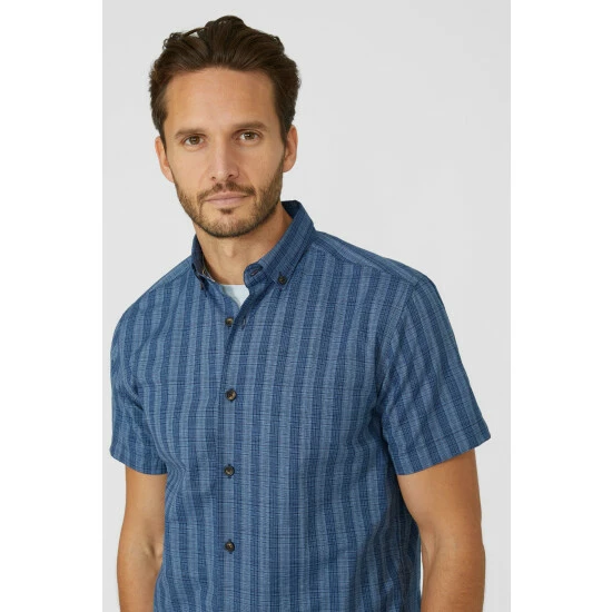 Short Sleeve Woven Check Shirt from Mantaray. Elevate your occasionwear attire with smart menswear styles and opt for this woven check shirt. Featuring short-cut sleeves, a smart collar neckline, front button detailing, a luxe check print aesthetic and a tailored cut finish. Made from 100% Cotton. Wash at 40. Model wears Size M.