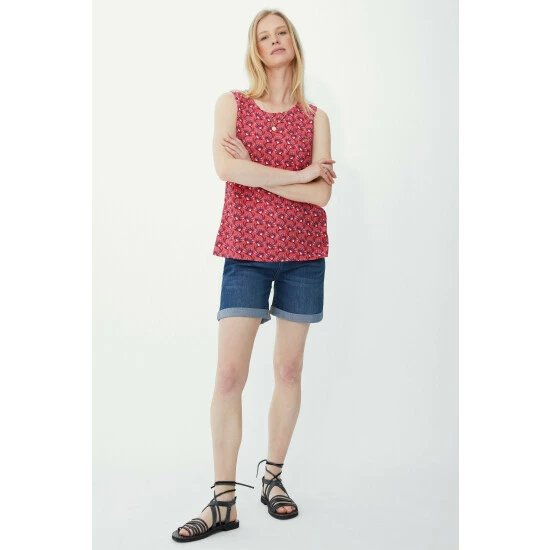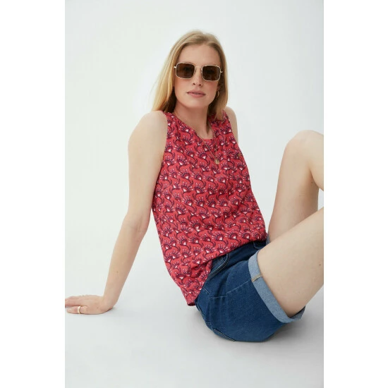 Sleeveless fan print top from Mantaray. Perfect for making an impact on warmer days, this sleeveless top features a fan print all over and a scoop neck. Pair with jeans and trainers for a casual look.