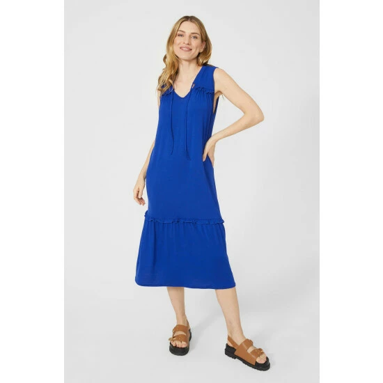 Sleeveless Frill Yoke Tier Jersey Maxi Dress