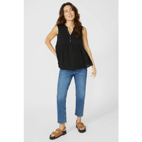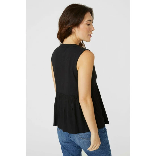 Sleeveless Slub Jersey Yoke Cheesecloth Top