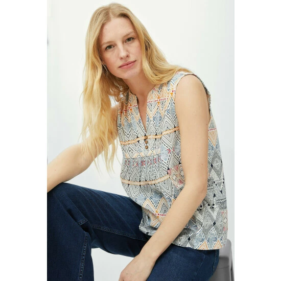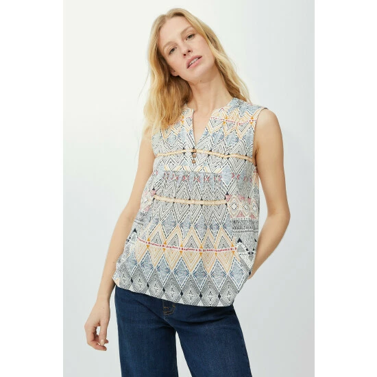 Zig-zag print vest top from Mantaray. Fresh in every sense of the word, with a unique print and lightweight construction, this sleeveless top is as ready as you are to go on fun adventures this summer.