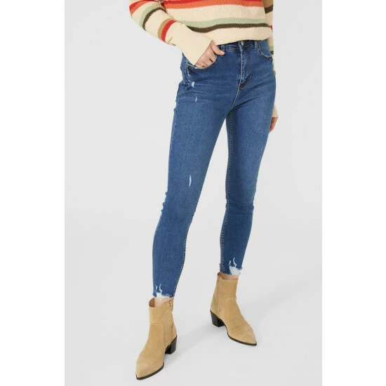 Slim Straight Distressed Jean from Mantaray. Figure-flattering and perfect to wear throughout the seasons, pick these straight distressed jeans for women. Featuring a high waist cut, front and back pocket detailing and a tailored cut finish to accentuate your shape and enhance your curves. Made from 100% Cotton. Wash at 30. Model wears a Size 10.