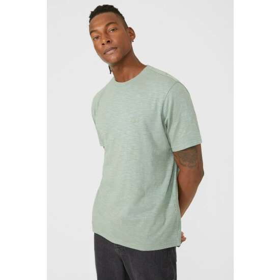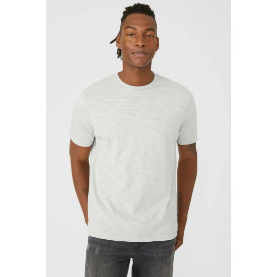 Slub Crew T-shirt from Mantaray. Easy-to-style and made from soft and lightweight fabrics, update your menswear wardrobe with this must-have men’s T-shirt. Featuring short-cut sleeves, a Slub Y neckline, front button detailing and a tailored cut finish for the perfect fit. Made from 100% Cotton. Wash at 30. Model wears a Size M.
