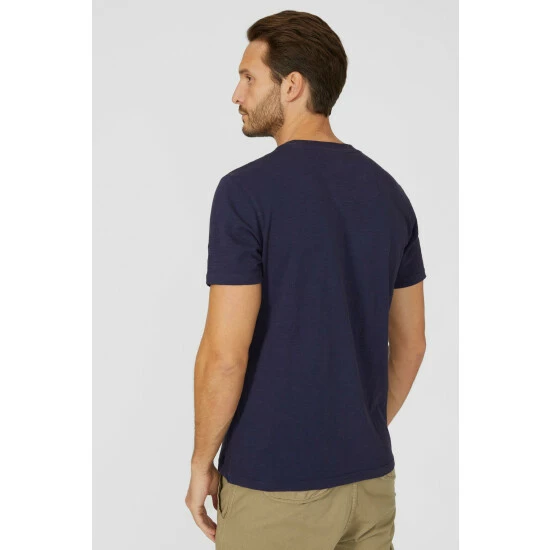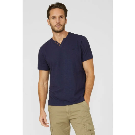 Slub Notch Neck T-shirt from Mantaray. Smart in style and crafted from premium fabrics, look to this Slub notch neck T-shirt for men. Boasting short-cut sleeves, a notch neckline with front button detailing and a tailored cut finish for the ultimate fit. Made from 100% Cotton. Wash at 30. Model wears a Size M.