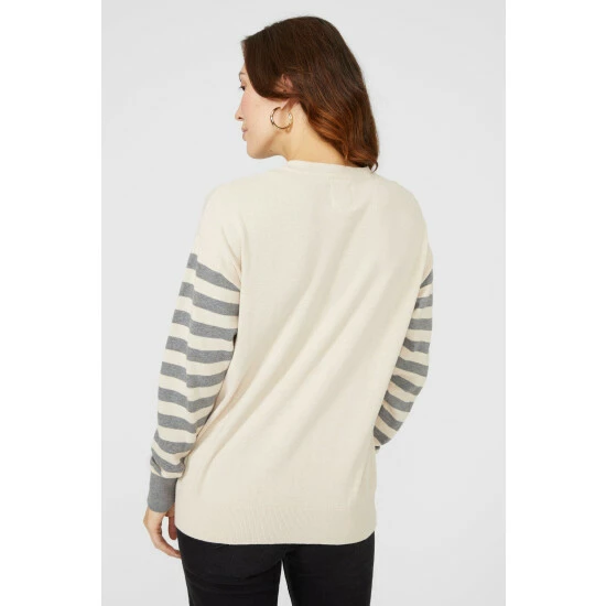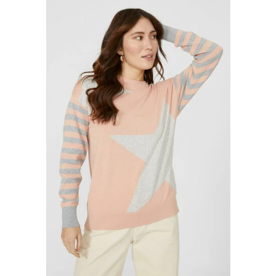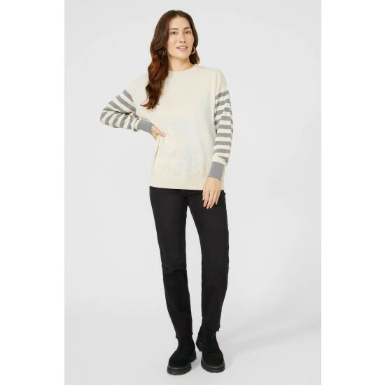 Stripe Sleeve Star Intarsia Cotton Jumper from Mantaray. Super-soft and crafted from premium fabrics, look to this statement women’s cotton jumper. Featuring long stripe sleeves, a comfortable neckline, star print detailing and a tailored cut finish for the perfect warm fit. Made from 100% Cotton. Wash at 40. Model wears a Size 10.