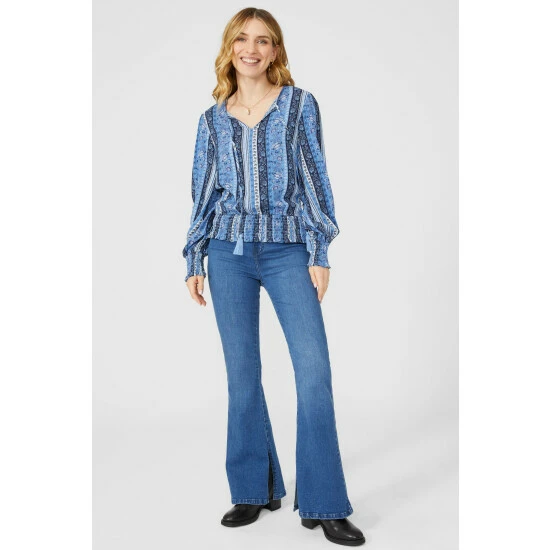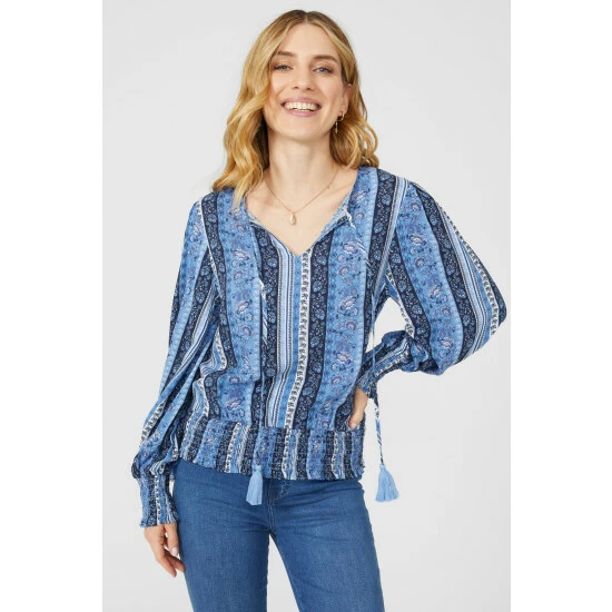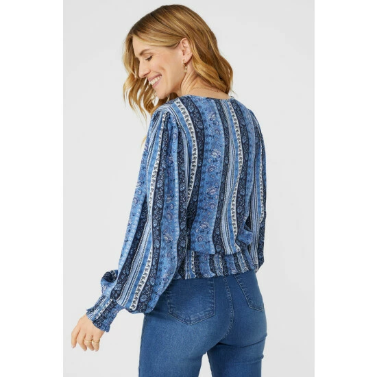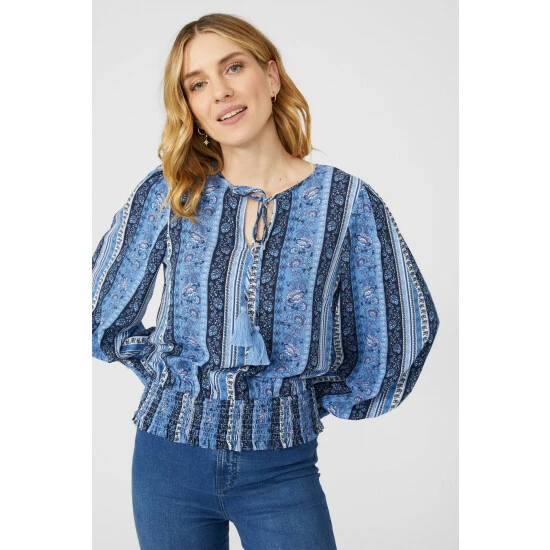 Striped Floral Shirred Hem Blouse