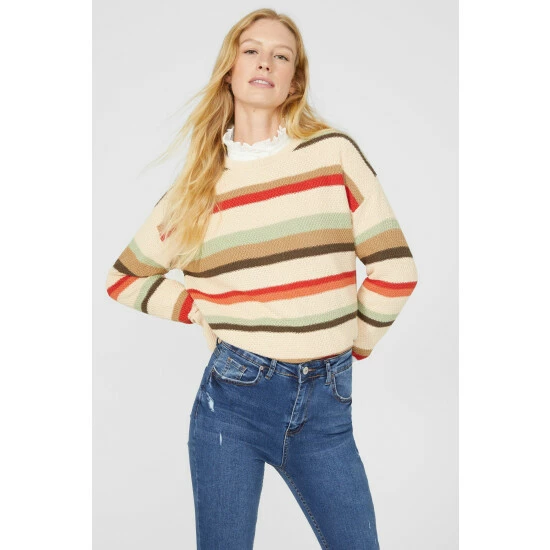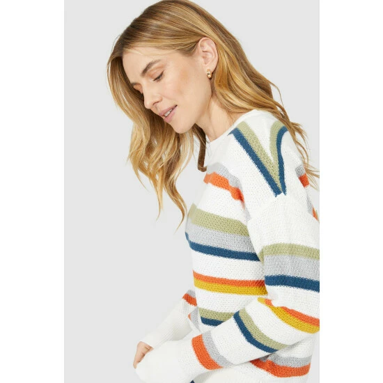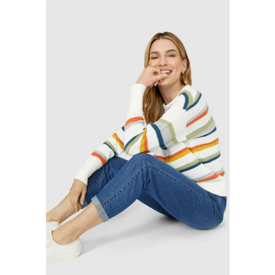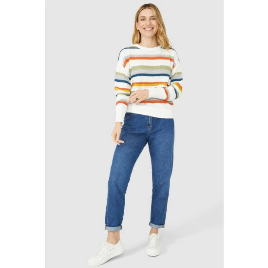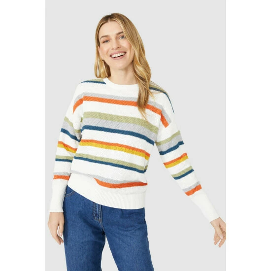 Textured Soft Stripe Crew Neck Jumper from Mantaray. Combine classic styles and luxe, super-soft fabrics together and discover this versatile women’s stripe jumper. Boasting long fitted sleeves with stretch cuffs, a comfortable crew neck design and a tailored cut finish for a figure-flattering fit to the body. Style with blue denim jeans and your favourite style of ankle boots. Made from 100% Cotton. Wash at 30. Model wears a Size 10.
