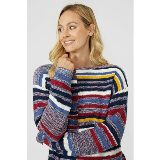 Textured Stripe Crew Neck Jumper from Mantaray. Modify your knitwear style with vibrant designs and beautiful colours and choose this stripe crew neck jumper for women. Boasting long soft sleeves with stretch cuffs, a comfortable crew neckline, textured stripe detailing and a tailored cut finish. Made from 50% Acrylic, 50% Cotton. Wash at 40. Model wears a Size 10.