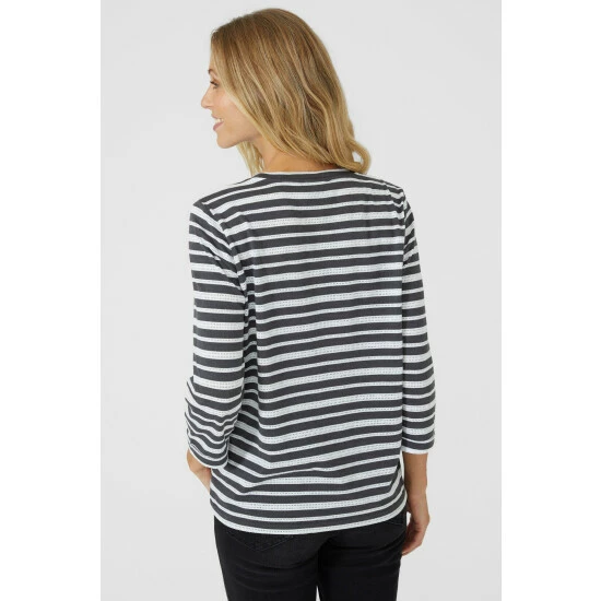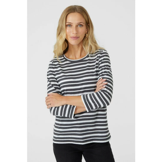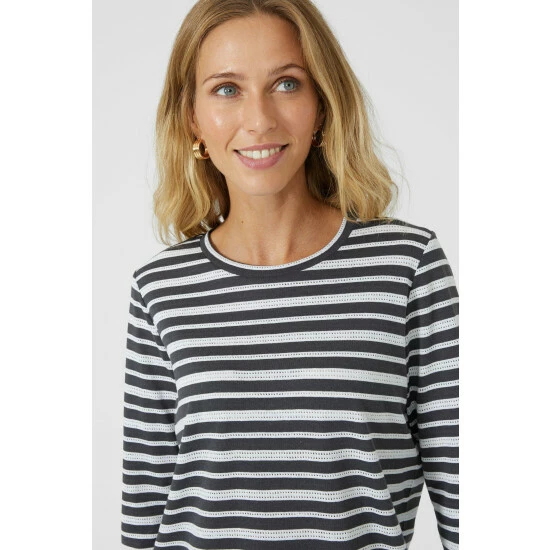 Textured Stripe Turn Back Cuff Tee from Mantaray. Timeless in design and crafted the softest fabrics, elevate your look with this beautiful women’s stripe Tee. Boasting long soft sleeves, a comfortable neckline, stripe print detailing and a tailored cut finish for the perfect fit. Crafted from 50% Cotton, 50% Polyester. Wash at 40. Model wears a Size 10.