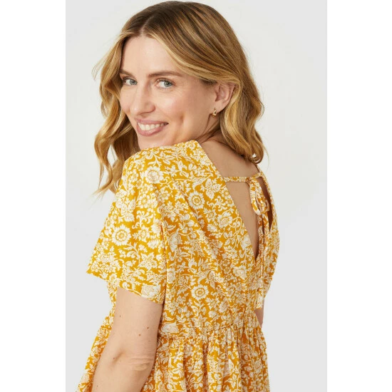 Tie Back V Neck Tiered Printed Tunic
