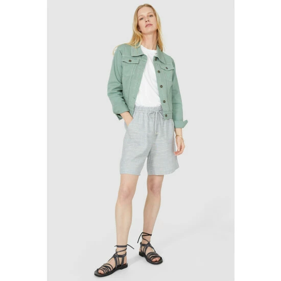 Tie waist chambray linen blend short from Mantaray. Perfect for making an impact on warmer days, this short has been crafted from a light weight linen material and features side pockets, a comfy elasticated waistband and drawstring. Pair with a cotton cami and sandals for an easy-breezy weekend style. Other colours available.