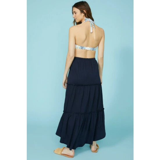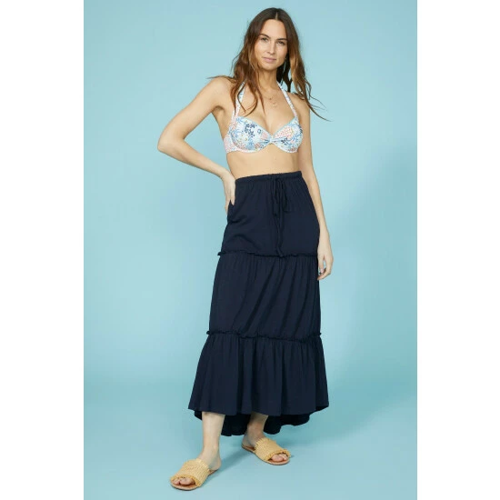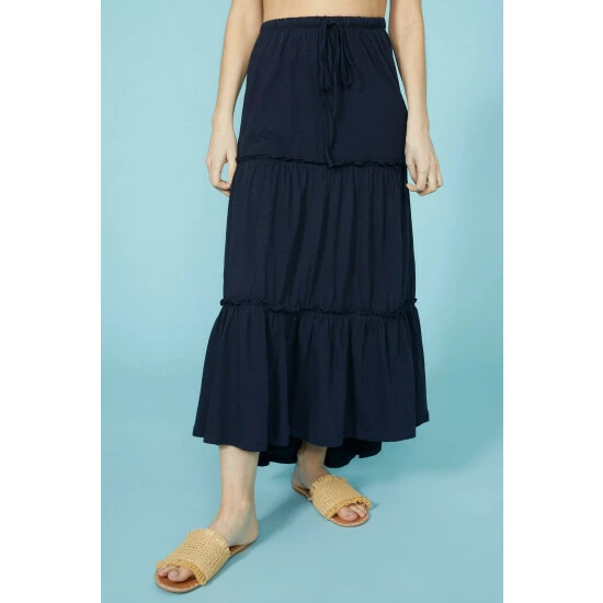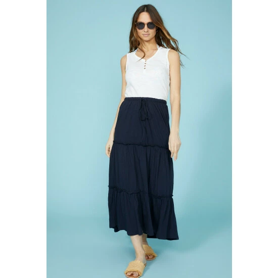 Tiered skirt from Mantaray. Crafted from 100% cotton this skirt feature a tiered skirt and comfy waistband with a drawstring. Pair with a cotton cami and sandals for an easy-breezy weekend style.