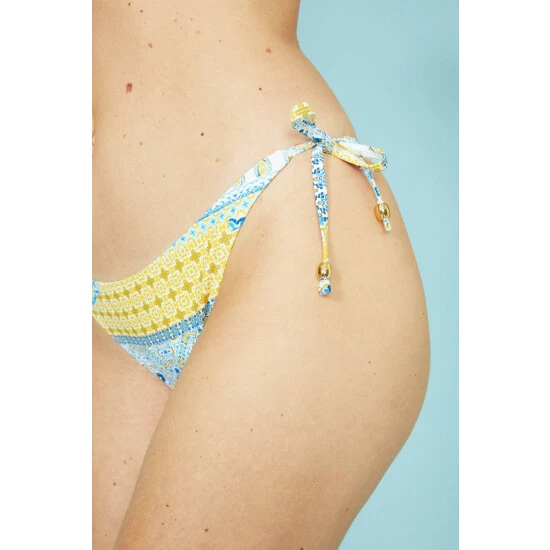 Tile Print Tie Side Bikini Bottom from Mantaray. Enhance your swimwear look this season and discover these must-have women’s bikini bottom. Featuring an eye-catching tile print with side tie bow detailing and a flattering yet fitted bikini bottom finish. Matching items available. Crafted from 80% Polyamide, 20% Elastane. Model wears a size 10. Wash on 40.