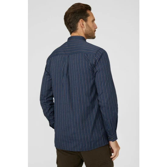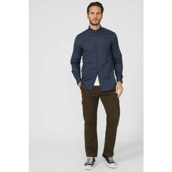 Varied Stripe Ls Grandad Collar Shirt from Mantaray. Elevate your occasionwear attire with formal styles and opt for this stripe collar shirt for men. Boasting long smart sleeves with cuff detailing, a grandad collar neckline, front buttons, smart stripe detailing and a tailored cut finish. Made from 100% Cotton. Wash at 40. Model wears Size M.