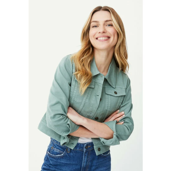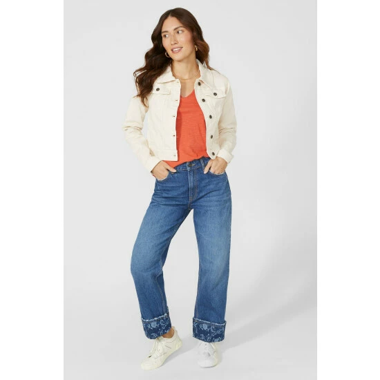 Western Twill Jacket from Mantaray. Upgrade your outerwear style for the season’s ahead with this versatile women’s twill jacket. Featuring long cut sleeves with button cuff detailing, a structured collar neckline, front button detailing, top front button pockets and a tailored cut finish for a figure-flattering look and feel. Made from 98% Cotton, 2% Elastane. Wash at 30. Model wears a Size 10.