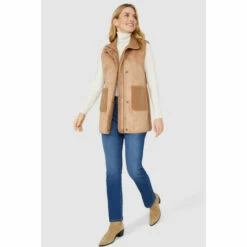 Mantaray Suedette Patch Pocket Gilet With Borg Trims For Female