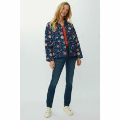 Mantaray Leafy Floral Print Collar Quilted Jacket For Female